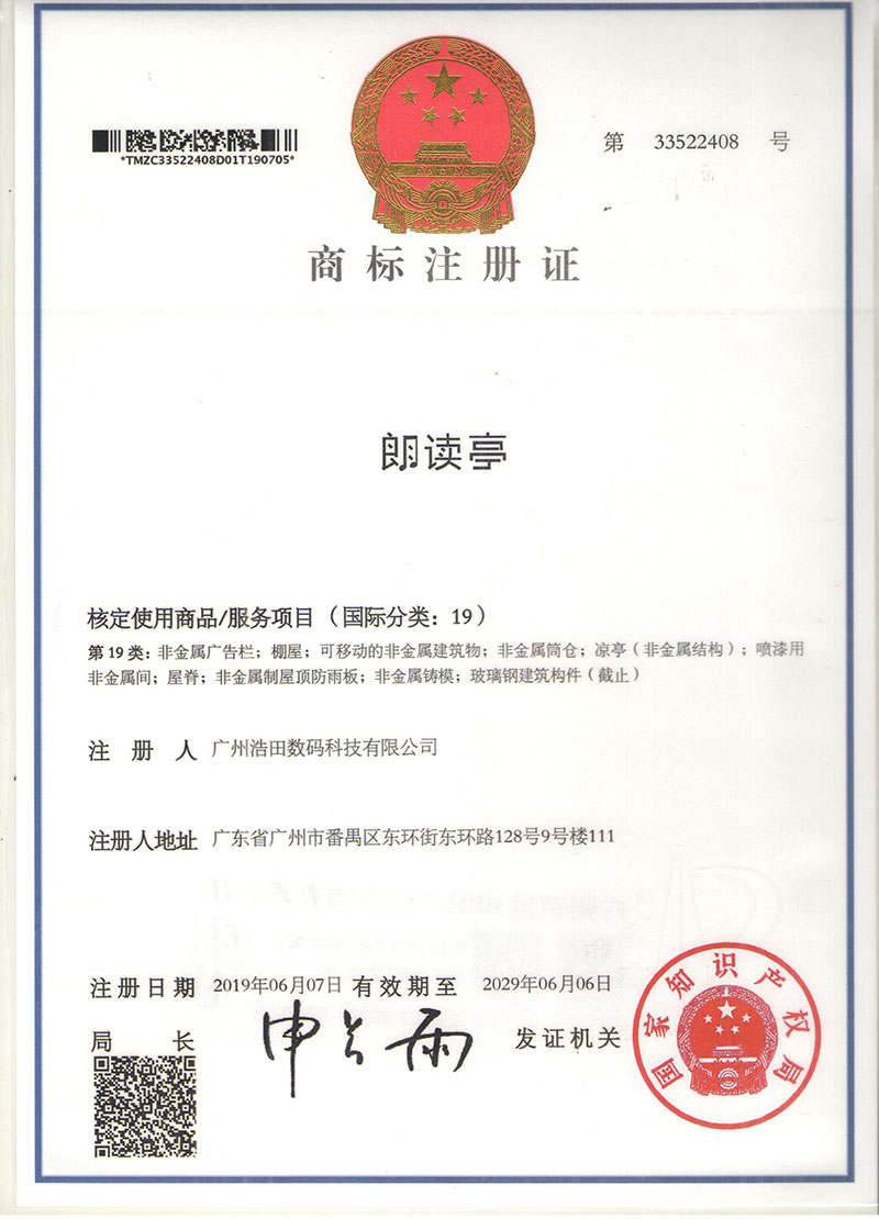 朗讀亭商標注冊證書