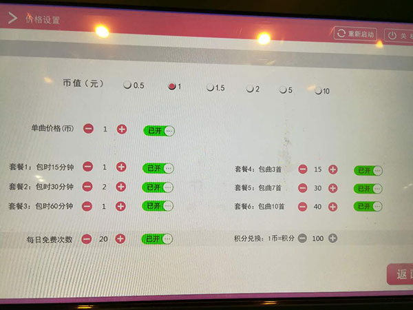 2.設(shè)置投幣收費(fèi)金額多少錢一首,單曲收費(fèi)等模式,一般設(shè)置6-10塊一首歌即可