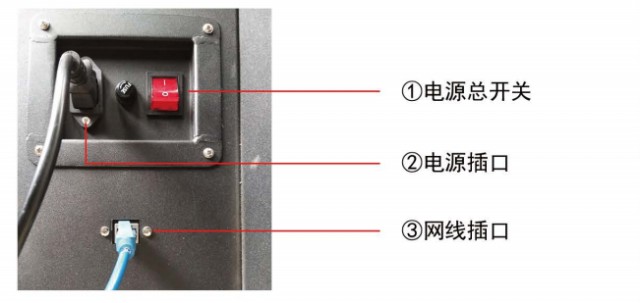 注:電源總開關按下直線為接通, 圓圈為斷開, 網絡線插口為標準RJ45接口, 每啟動系統30次, 開機會進行一次硬碟檢查, 可能需要10分鐘左右。