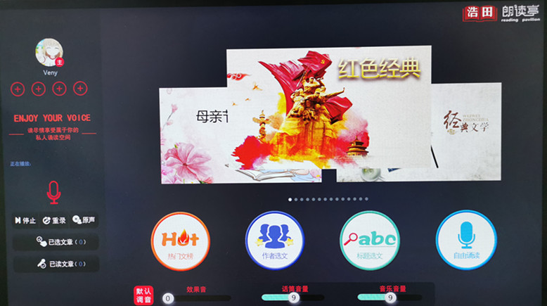浩田朗讀亭為了慶祝祖國的70歲生日,添加了大量的愛國素材,如:紅色家書、習(xí)近平總書記系列講話、詩作、慶祝新中國成立70周年、建黨98周年等主題。