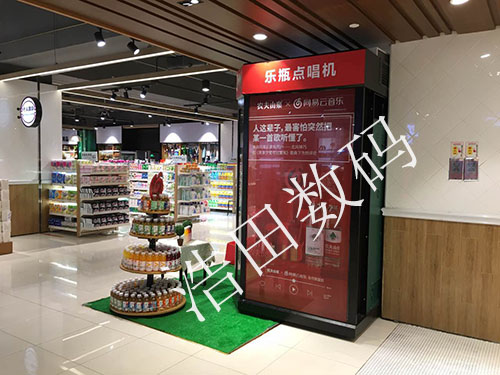 商家案例,例如商場,商場是眾多品牌匯聚的空間,如何搶奪消費者,入駐商家必然要吸引顧客的注意力,產品信息易于接受的,搶眼的,產品與消費者達成互動影響。浩田之前為網易云和農夫山泉定制廣告版的迷你ktv“樂瓶點唱機”,通過機身的噴畫,在賣場上吸引了大批眼球,重塑了品牌形象和消費者認知,帶動消費。